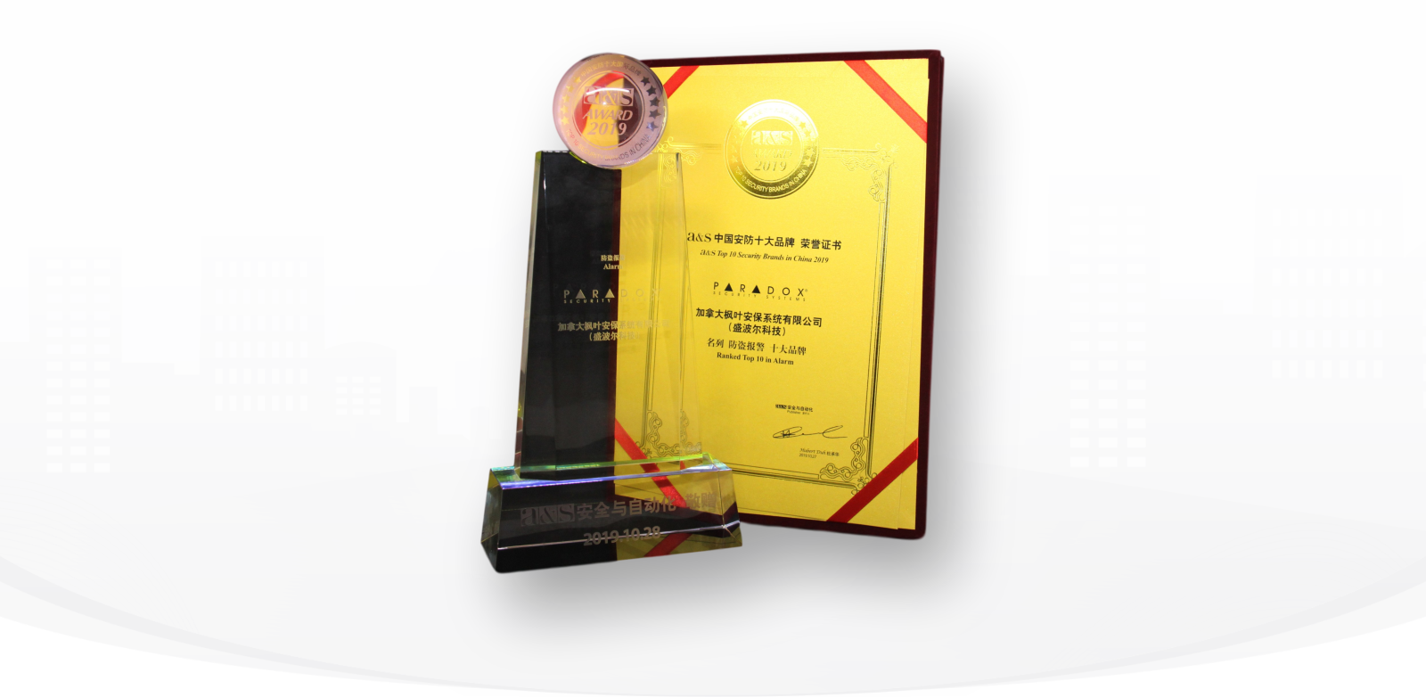 中國深圳,2019年10月29日,提供整套專業(yè)智能安保系統(tǒng)解決方案及全套產(chǎn)品的高科技安防企業(yè)、多項行業(yè)大獎獲得者盛波爾公司宣布,PARADOX在A&S的年度客戶調(diào)查評選中,再次榮獲2019年度A&S“安防十大國際品牌”獎項,PARADOX已經(jīng)連續(xù)16年榮此殊榮。該調(diào)查在中國范圍內(nèi)展開,活動注重品牌在性能、性價比、產(chǎn)品品質(zhì)與可靠性、技術(shù)支持與服務(wù)、產(chǎn)品操作性等各方面的綜合表現(xiàn)。